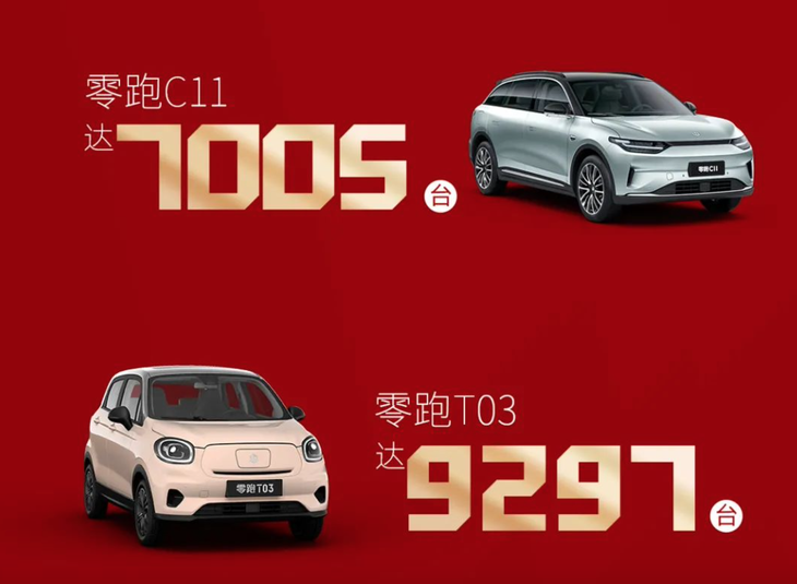 具体来看,零跑C11的11月订单量为7005辆,零跑T03的11月订单量诶9297辆,二者毫无疑问成为了零跑汽车的销量主力。