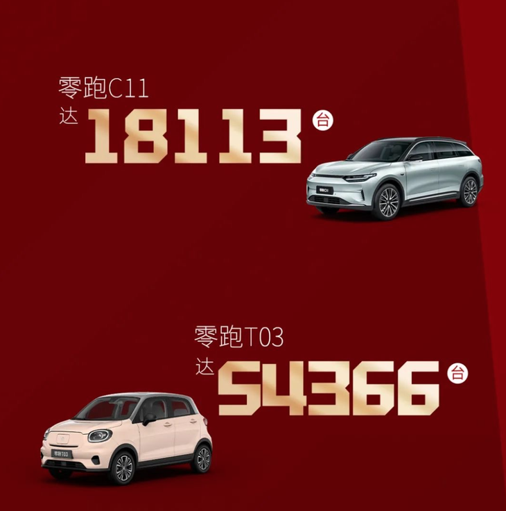 今年1-11月,零跑汽车已经提前完成了全年目标,年度累计订单量达到73561辆。其中,零跑C11为18113辆,零跑T03为54366辆。