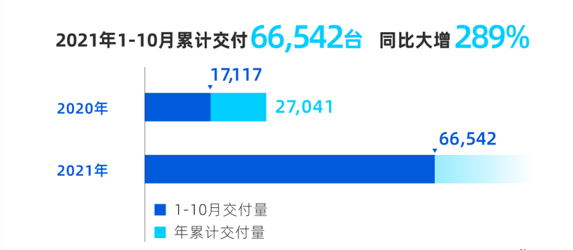 11月1日,小鹏汽车率先公布最新销量情况。数据显示,10月,小鹏汽车共计交付新车10138台,与9月销量基本持平,但相比去年同期增长233%,并达成连续两个月交付突破万台的历史记录。1-10月,小鹏汽车已累计交付66542台,达到去年同期的4倍左右。截至2021年10月底,小鹏汽车历史累计交付量已突破10万。