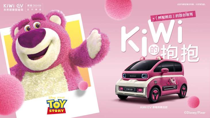 外观方面,草莓熊特别版依旧是采用了现款车型的整体造型,只是在车身配色和车身细节上进行调整。比如,新车采用了草莓熊的粉红和粉白车色,却有着毛绒质感,仿佛毛绒玩具一般,极具个性。此外,新车还在车顶加入熊耳朵,车尾部加入车尾巴等装饰。