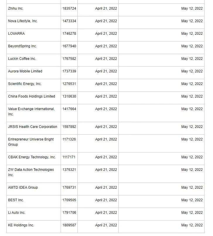 当地时间4月21日,美国证券交易委员会(SEC)再次将理想汽车、瑞幸咖啡、百世集团、贝壳等17家中国企业列入“预摘牌”名单中,这是自3月份以来第五批被纳入名单的中概股公司。