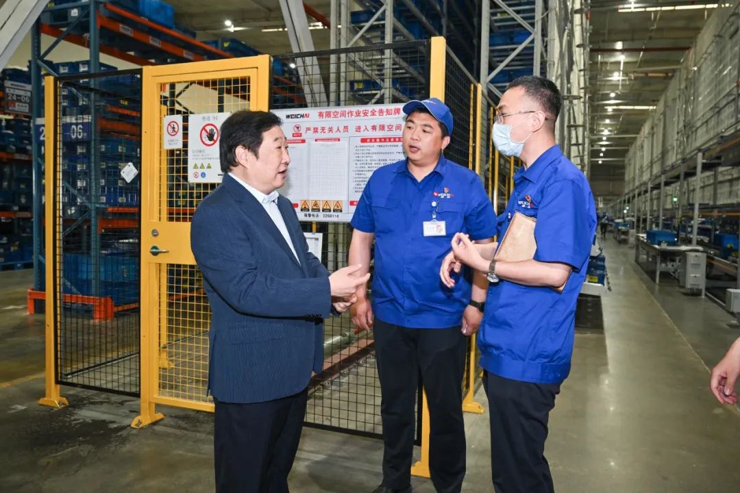 5月5日下午,谭旭光先后到潍柴全球智能物流配送中心、智能增减材制造中心,现场调研全球供应链保障和新一轮投资项目的方案制定情况。 “打通供应链,确保稳增长!” 谭旭光首先来到潍柴全球智能物流配送中心德马泰克智能分拣线,详细询问当前物流配送和供应链保障情况。随后,来到正在建设中的全球智能物流配送中心二期项目,调度项目进度。他说,当前产品出口和供应链畅通是集团决胜上半年的重中之重,要采取一切可能的措施,动员全球资源,确保出口产品能出得去、技术改造设备能进得来、供应链物流保障到位! “打造世界一流的智能增减材制造中心!” 谭旭光来到正在建设中的潍柴3D打印智能制造中心,询问项目建设和设备到位情况。他要求,一定要按照柔性、敏捷、面向未来的系统理念,建设世界一流、国内无法替代的增减材制造中心,为高端动力项目研发提供保障!