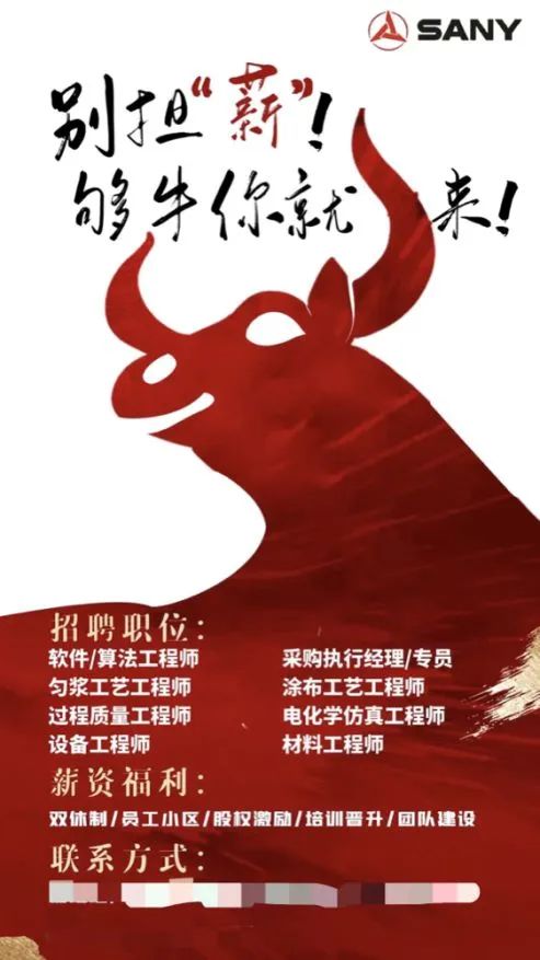 三一重工也在近期释放出了要在乘用车市场大干一场的信号:根据国家知识产权局官网的最新公告,一家三一重工的全资子公司申请的皮卡车专利图正式浮出水面。车头的SANY车标相当闪耀,其整体造型更是与特斯拉Cybertruck颇为神似,上述种种细节不免让我们觉得,三一重工终于做好了准备杀入乘用车赛道。在网络上,一张三一重工最新发布的招聘海报也在持续热传。根据海报的内容,三一重工将高薪招聘、软件/算法工程师、匀浆工艺工程师、过程质量工程师、设备工程师、采购执行经理/专员、涂布工艺工程师、电化学仿真工程师、材料工程师等8个新职位。熟悉动力电池行业的人士也十分清楚,过去也只有像宁德时代、比亚迪电池、中创新航、赣锋锂业这样的动力电池供应商才会有招聘上述8类人才的需求。、不过对三一重工来说,如果不具备自研自产动力电池的能力,在工程机械电动化的道路上也会面临不少限制。今年初,三一重卡集团与亿纬动力、特来电签署了战略合作协议,双方将在能源交易,新能源汽车,动力电池制造,充电服务,电池梯次利用,储能微网等领域进行全面的合作。今年4月,三一重工与巴特瑞公司签署了战略合作协议,将在电池银行、废旧电池回收等领域开展长期合作,并共同构建电池回收网络。贯穿整个电池的使用寿命。