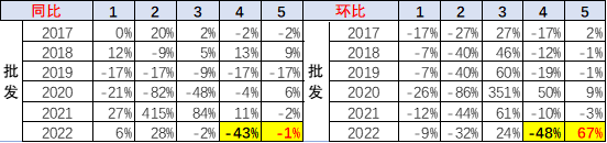 5月的厂家批发同比增-1%,环比增67%,总体表现不错。
