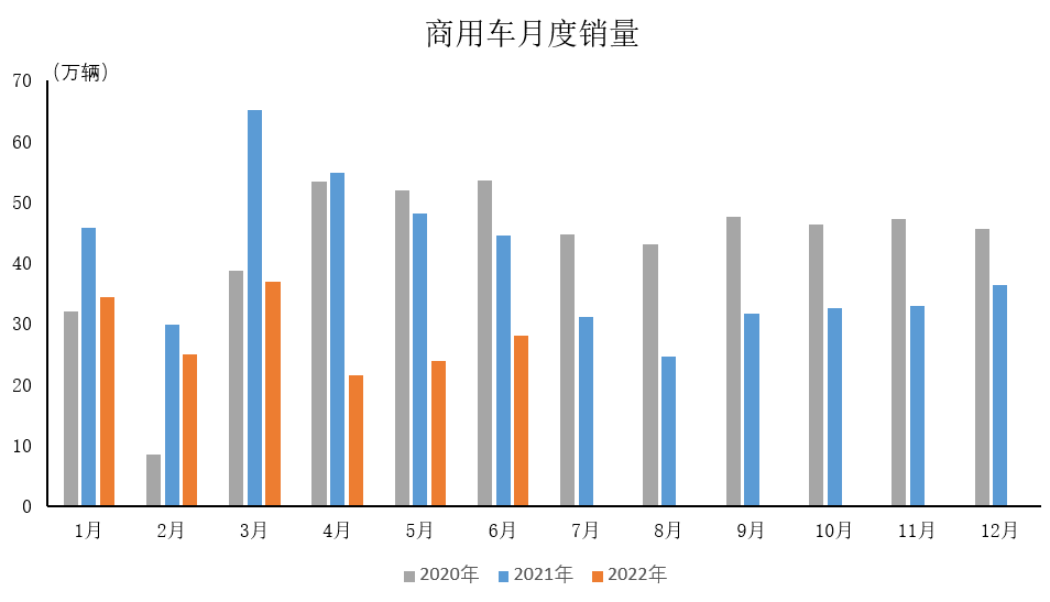 据中国汽车工业协会统计分析,2022年6月,相较乘用车,商用车由于直接受政策促进不明显,因此总体形势依然未见明显好转,仍有待恢复。