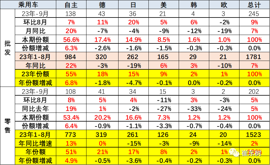 9月自主品牌零售107万辆,同比增长20%,环比增长7.9%。