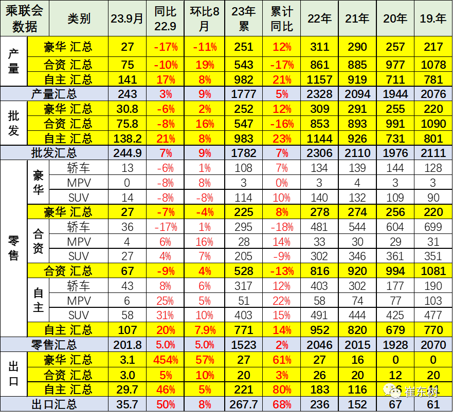 2023年9月燃油车批发增速稍好于零售。2023年9月燃油车MPV零售增长表现较强。1-9月的MPV同比增长18%,零售很强。