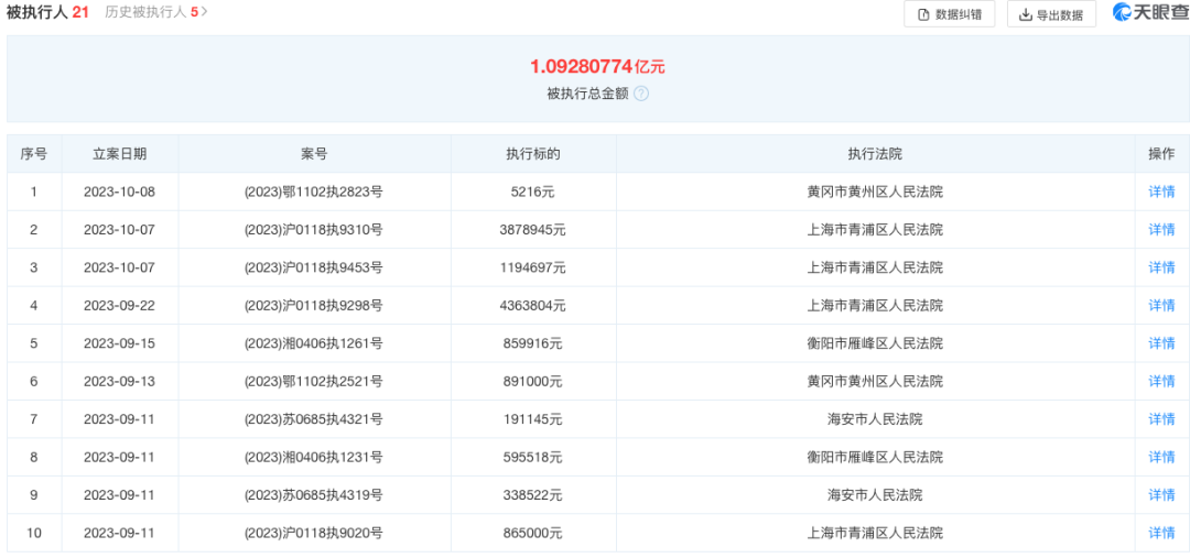 眼下,威马汽车已深陷债务泥沼。天眼查信息显示,威马汽车累计被执行信息为21条,被执行总金额超1亿元。同时该公司还存在多条股权冻结信息,最新一条为9月27日,被执行人为苏州威马智慧出行科技有限公司,冻结股权数额为60亿元,冻结期限自2023年9月27日至2026年9月26日,执行法院为上海市浦东新区人民法院。